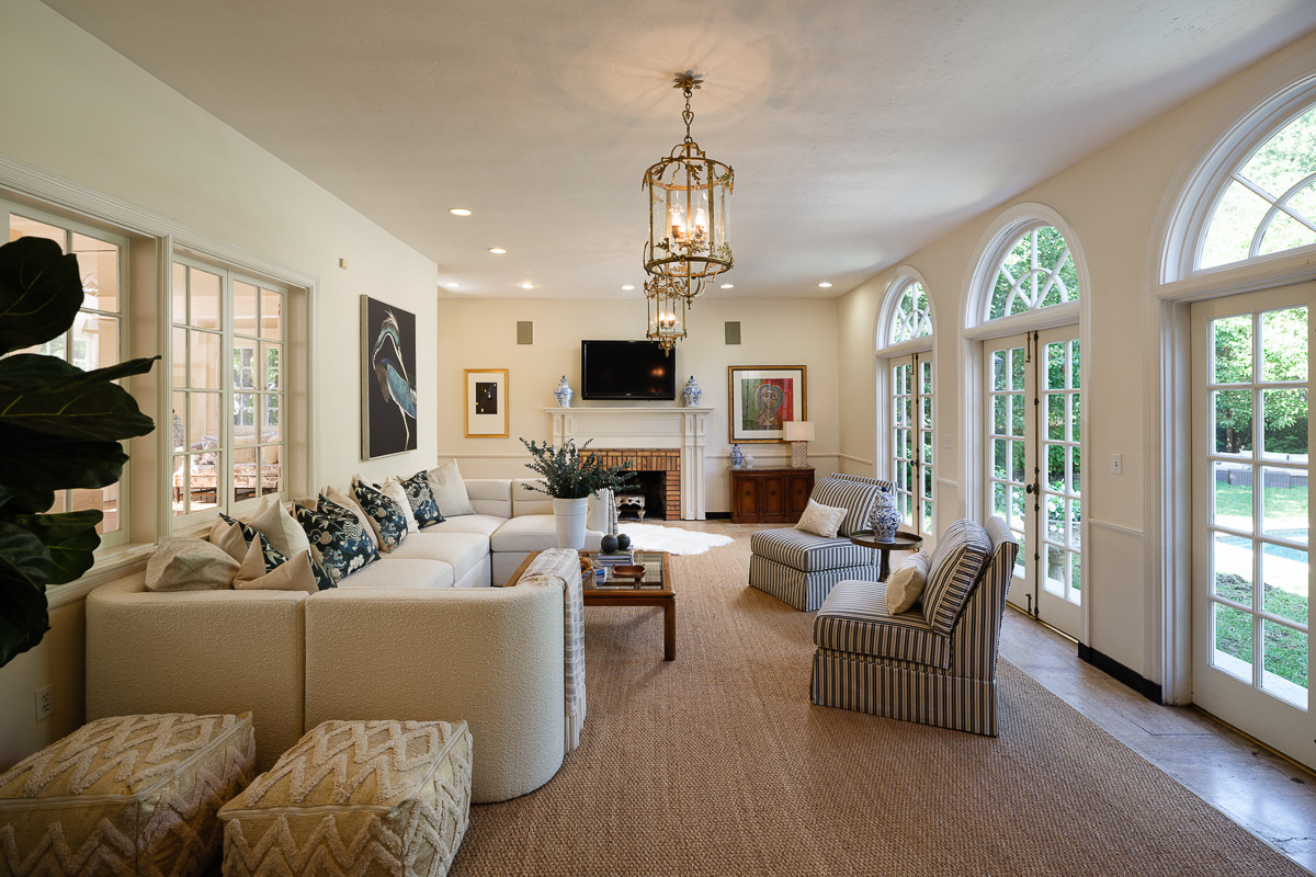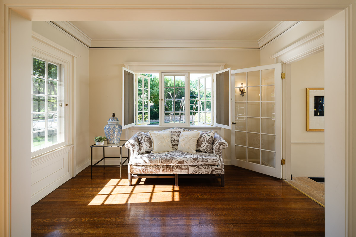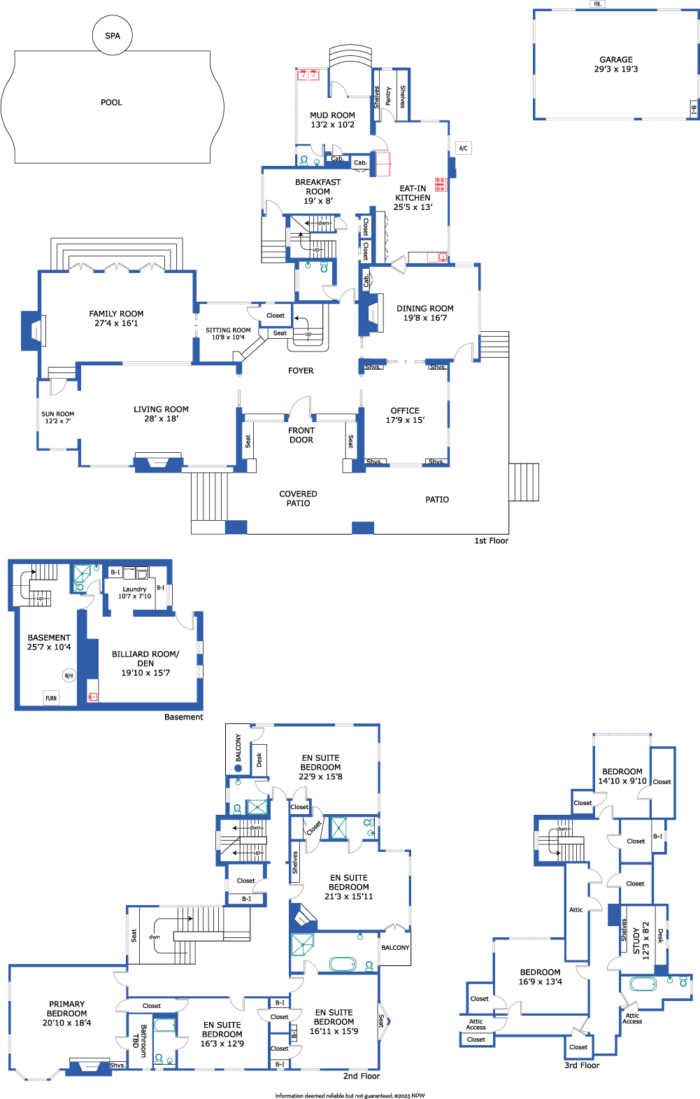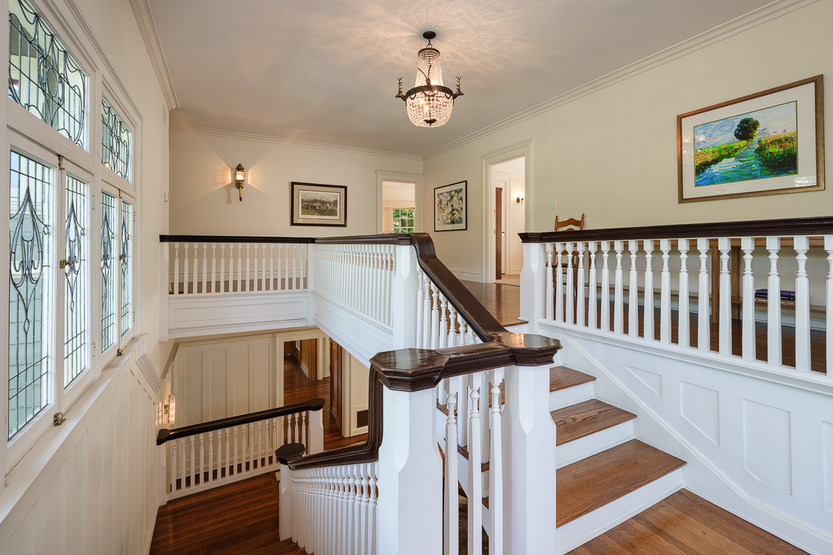 The 7,323 square foot (measured) interior is made up of three expansive levels, as well as a finished basement with bar that adds an extra 577 square feet (measured). Each room is more breath-taking than the last and includes a beautiful living room, a sun dappled family room or parlor with French doors that look out at the dark bottom pool, as well as the rear yard with numerous seating areas. This level also features a stately formal dining room with wood paneled wainscoting, an office with elegant built-ins, a delightful sunroom, a sitting room, a spacious kitchen where the possibilities abound, a deep walk-in pantry, a mud room and so much more. The regal center staircase leads you up to the second level that has magnificent leaded glass windows as well as five bedrooms including the primary suite that has a marble surround fireplace, as well as a charming seating area. The third level offers two additional bedrooms, a study, a craft or homework room plus ample storage and closets throughout. Not to be missed is the basement that is a perfect den or billiards room with a private entrance that steps up to the driveway and three-car garage.