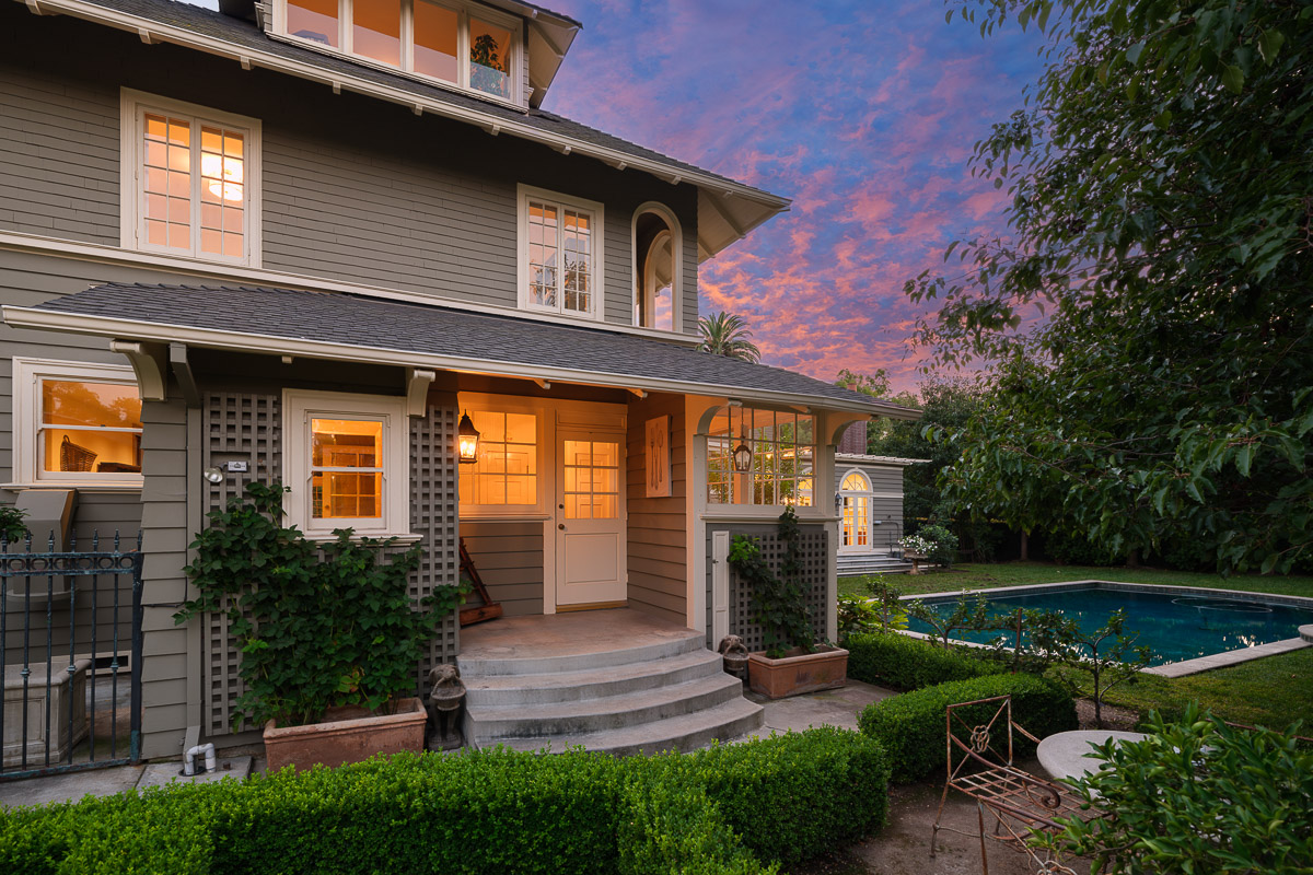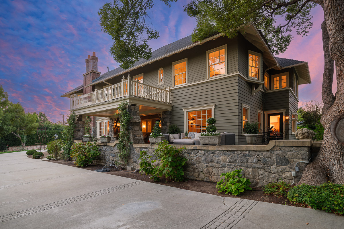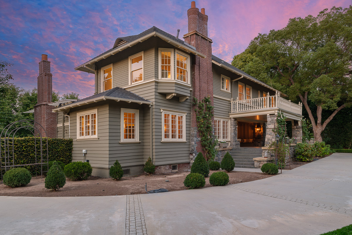 Welcome to this incredible showcase worthy estate sited on an idyllic tree lined street with stunning curb appeal in one of South Pasadena’s most desirable neighborhoods. The seven bedroom, seven bath Prairie style residence is picture perfect and takes you back in time to offer a glimpse into the elegance and grandeur of when this was built in 1903. The home sits raised on a verdant knoll that is bookended by two gated entries that connect via a grand circular drive. You are then beckoned in from the wide, welcoming front porch that wraps the home and sits under a majestic canopy from the tree branches above.