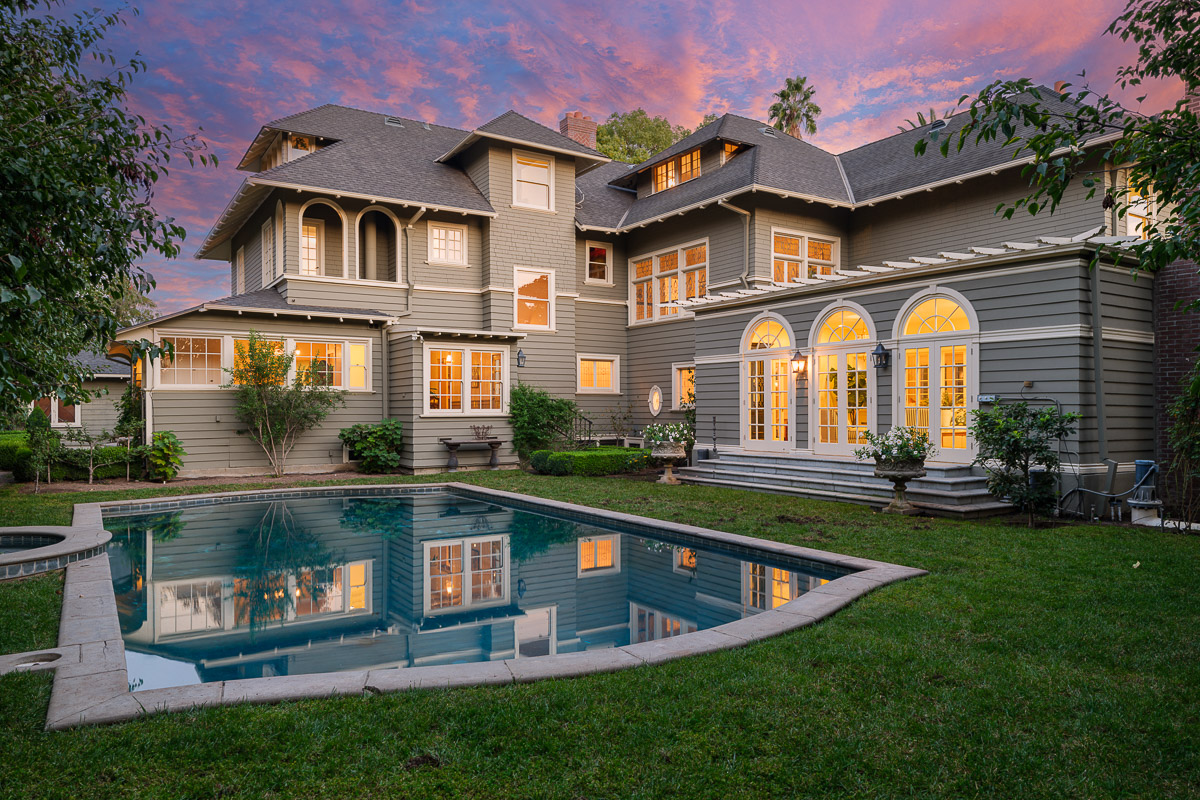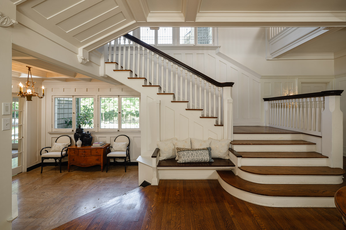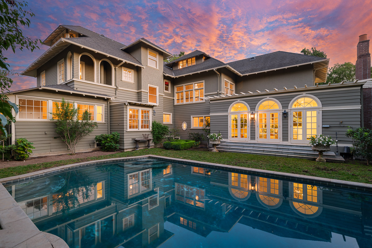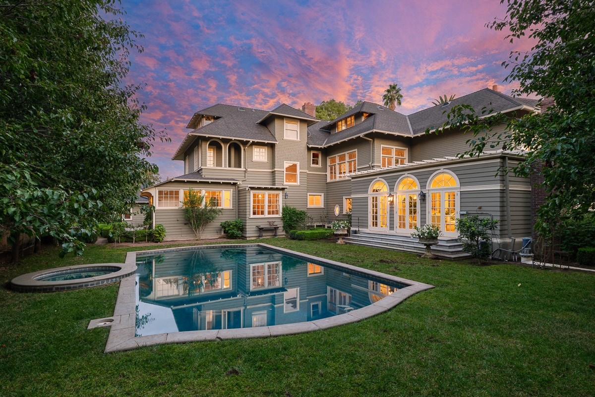 Welcome to this incredible showcase worthy estate sited on an idyllic tree lined street with stunning curb appeal in one of South Pasadena’s most desirable neighborhoods. The seven bedroom, seven bath Prairie style residence is picture perfect and takes you back in time to offer a glimpse into the elegance and grandeur of when this was built in 1903. The home sits raised on a verdant knoll that is bookended by two gated entries that connect via a grand circular drive. You are then beckoned in from the wide, welcoming front porch that wraps the home and sits under a majestic canopy from the tree branches above.